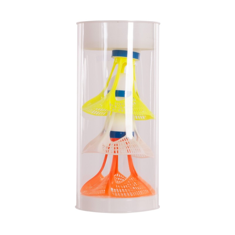 VOLANTES DE BáDMINTON INDICADOS PARA ENTRENAMIENTOS DE ESTE DEPORTE. SE VENDE EN TUBO DE 3 UNIDADES. LARGO DEL VOLANTE: 8,5CM APROX. ALTO DE LA CABEZA DEL VOLANTE: 2,5CM.