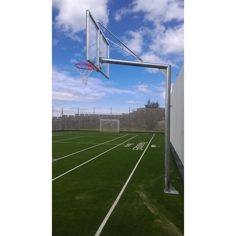 CANASTAS DE SECCIóN REDONDA PARA EMPOTRAR AL SUELO MEDIANTE UNA BASE DE ANCLAJE (INCLUIDA). IDEAL PARA PISTAS DEPORTIVAS DE EXTERIOR. VUELO CANASTAS: BALONCESTO: 1,65 MTS - MINIBASKET: 1 MT. CONTIENE DOBLE SISTEMA DE TUERCAS DE NIVELACIóN, TANTO EN SOPORTE DE TABLERO COMO EN BASE DE ANCLAJE, INCORPORA TAMBIéN DOS TIRANTES SUPERIORES DE ESTABILIZACIóN A LAS ESQUINAS DEL SOPORTE DEL TABLERO. CONSULTE LAS DIFERENTES VARIEDADES DE ACCESORIOS QUE PERMITE, COMO AROS, TABLEROS, REDES, PROTECCIONES VARIAS, ETC. ACABADO GALVANIZADO GRIS. EL MATERIAL METáLICO QUE FORMA PARTE DE LA CANASTA LLEVA UN PROCESO DE GALVANIZADO EN CALIENTE POR INMERSIóN QUE PROTEGE EL HIERRO DE LA OXIDACIóN AL EXPONERSE ANTE UNA ALTA CORROSIóN (IDEAL PARA ZONAS COSTERAS)
