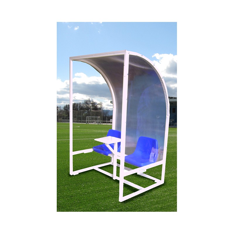 BANQUILLOS FABRICADOS EN UNA SOLA PIEZA, CON UN PERFIL METáLICO PREGALVANIZADO Y LACADO CON PINTURA POLIéSTER DE 40X40X2MM, LATERALES EN POLICARBONATO COMPACTO DE 3MM Y RECUBIERTO POSTERIOR Y SUPERIOR MEDIANTE PLANCHAS DE POLICARBONATO CELULAR DE 10MM.