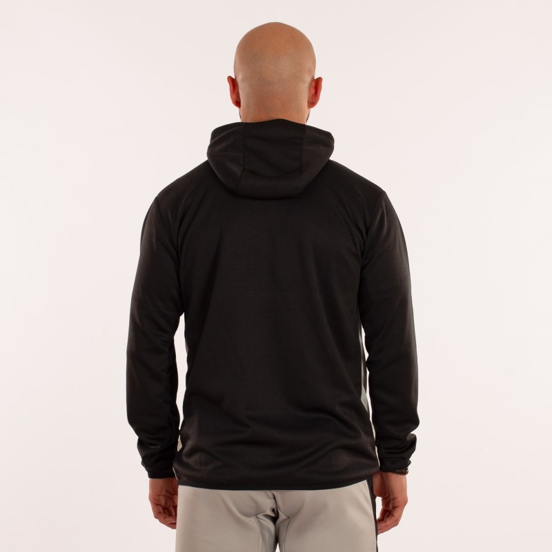 LA CHAQUETA DE MANGA LARGA,CREMALLERA COMPLETA EN EL FRENTE Y CAPUCHA. PRINCIPALMENTE PREDOMINA EL COLOR GRIS Y MANTIENE EL NEGRO EN EL CUELLO, CAPUCHA Y MANGAS. LA CHAQUETA CUENTA CON DOS BOLSILLOS CON CREMALLERAY EL PANTALóN DOS SIN CREMALLERA Y OTROS DOS EN LOS LATERALES CON CREMALLERA. ADEMáS ESTE CUENTA CON CINTURá ELáSTICA CON CORDóN PARA UN PERFECTO AJUSTE. CORTE RECTO, SIN PUñO.