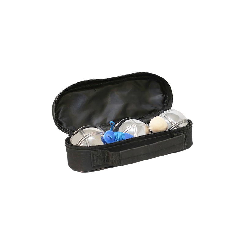 JUEGA A LA PETANCA Y TRABAJA TU PRECISIóN EN CUALQUIER LUGAR Y MOMENTO. COMPUESTO POR 3 BOLAS DE ACERO CROMADO Y UN BOLICHE. DE CóMODO AGARRE. FáCIL ALMACENAJE Y TRANSPORTE GRACIAS A SU FUNDA (22,5X8X8CM).