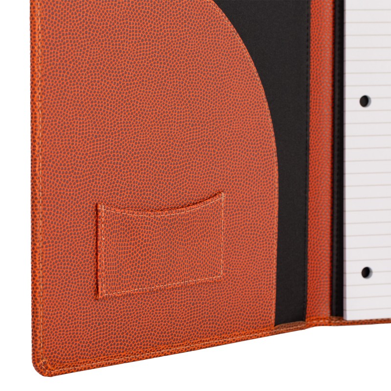 CON LA MARCA OFICIAL Y PIEL DEL BALóN OFICIAL DE LA NBA, ESTA CARPETA ES TU LUGAR DE REFERENCIA PARA LAS NOTAS DE CAMPO E INFORMES DE EXPLORACIóN ADEMáS DE OTROS DEBERES FUERA DE LA PISTA QUE REPRESENTARá A TU EQUIPO. CON UNA CAPACIDAD PARA UN BLOC DE NOTAS DE 8.5" X 11" ESTA DURADERA CARPETA TE AGUANTARá DURANTE TEMPORADAS AL IGUAL QUE TU PASIóN POR ESTE DEPORTE.