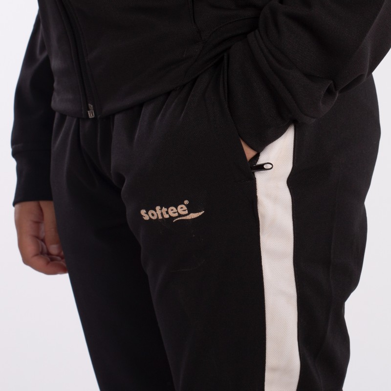 CHáNDAL COMBINADO CON DISEñO LATERAL. PANTALóN DE CORTE ESTRECHO CON PUñO Y CINTURA AJUSTABLE. CHAQUETA CON CREMALLERA FRONTAL, PUñOS Y CINTURA ELáSTICA. CUENTA CON BOLSILLOS LATERALES CON CREMALLERA. GRAMAJE: 260GSM. TALLAS: 6, 8, 10, 12, 14 AñOS, S, M, L, XL, XXL.