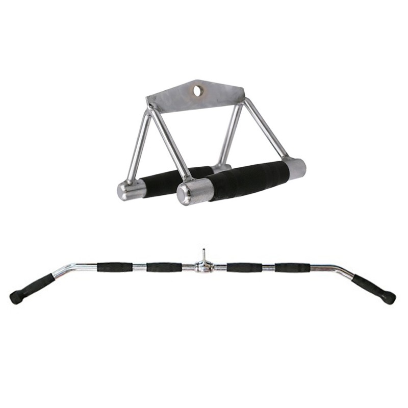 SET FORMADO POR: 1 AGARRE REMO: FABRICADO EN ACERO CROMADO CON AGARRE ENGOMADO PARA EVITAR QUE RESBALEN LAS MANOS. 1 BARRA DORSAL: ACCESORIO PARA MáQUINAS FITNESS QUE OFRECE DIFERENTES OPCIONES DE AGARRE PARA TRABAJAR VARIOS GRUPOS MUSCULARES. ASAS EN GOMA PARA UN MAYOR CONFORT. MEDIDAS: 120CM.