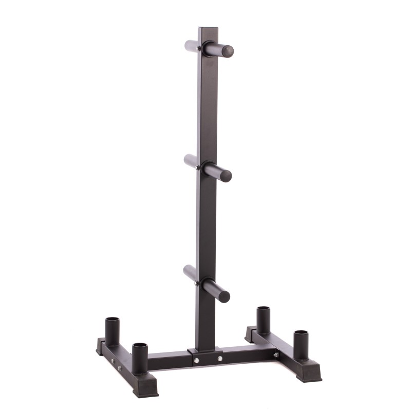 SOPORTE VERTICAL DISEñADO ESPECIALMENTE PARA MANTENER TU MATERIAL ORGANIZADO Y ALMACENADO EN UN ESPACIO REDUCIDO. FABRICADO CON PATAS DE GOMA ANTIDESLIZANTE. CUENTA CON 6 ZONAS PARA LA COLOCACIóN DE DISCOS Y CON 4 PARA COLOCACIóN DE BARRAS OLíMPICAS. LARGO DE SOPORTE DE DISCO: 20CM. ALTURA DEL SOPORTE DE BARRAS: 10CM. MEDIDA: 74X65X138CM.