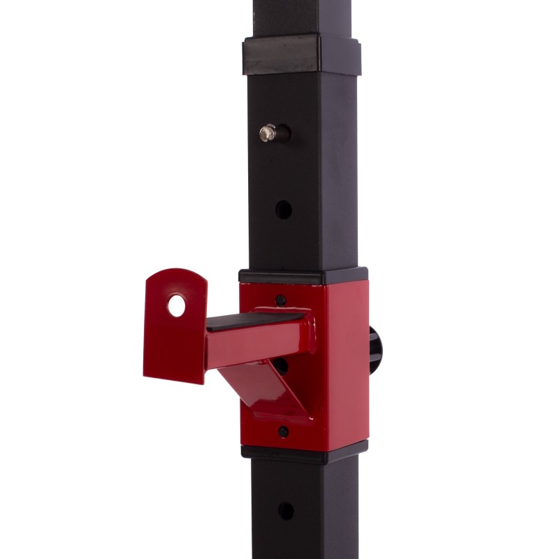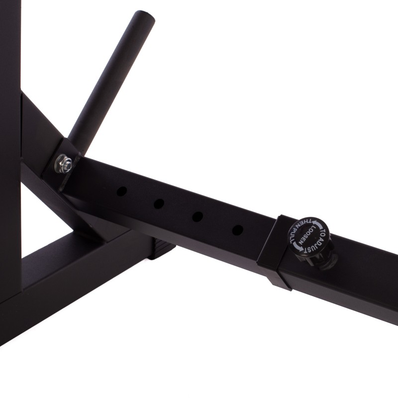 SOPORTE DISEñADO PARA REALIZAR DIFERENTES EJERCICIOS Y TRABAJAR ASí DIFERENTES GRUPOS MUSCULARES. ESTRUCTURA EXTENSIBLE DE 73CM A 113CM EN 9 POSICIONES PREESTABLECIDAS. PROFUNDIDAD: 55CM. ALTURA: EXTENSIBLE DE 83CM A 142CM EN 11 POSICIONES PREESTABLECIDAS. CUENTA CON DOS AGARRES PARA DISCOS Y DOBLE ZONA DE APOYO DE BARRA. LAS PATAS CUENTAN CON TERMINACIONES DE GOMA ANTIDESLIZANTE PARA UNA MAYOR SEGURIDAD.