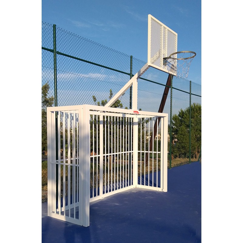PRODUCCIÓN BAJO PEDIDO. ANCLAR SIEMPRE AL SUELO. PORTERíAS COMPUESTAS POR MARCO (LARGUEROS Y POSTES) DE DIMENSIONES NORMATIVA FIFA DE 3,00 X 2,00 MTS INTERIORES, PROVISTO DE ARQUILLOS METáLICOS REFORZADOS DE SECCIóN DE 25 MM QUE HACEN LA FUNCIóN DE RED Y CANASTA CON TABLERO ANTIVANDALICO CON CHAPA PERFORADA DE DIMENSIONES MINIBASKET PERO CON LA ALTURA REGLAMENTARIA AL ARO DE BALONCESTO, EL VUELO DE DICHA CANASTA ES DE 65 CM. IMPORTANTE, NECESARIO Y OBLIGATORIO EL ANCLAJE AL SUELO DE LA ESTRUCTURA MEDIANTE LAS 7 PLETINAS CON AGUJEROS DE 1,5 CM QUE LLEVA INCLUIDOS PARA PODER ATORNILLARLO AL SUELO CADA PORTERíA. NO INCLUYE NI AROS, NI REDES, SE PUEDE SELECCIONAR CUALQUIERA DE DICHOS PRODUCTOS DE NUESTRO CATáLOGO. POSIBILIDAD DE PINTADO EN COLOR GRIS, VERDE, BLANCO. CONSULTE OTRAS OPCIONES.