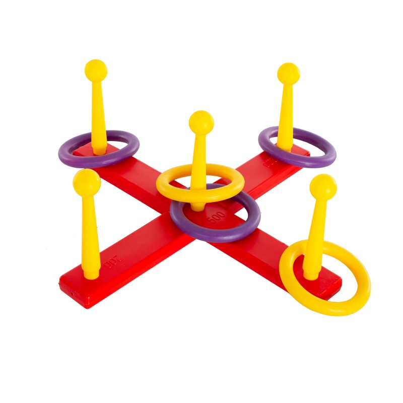 SET FORMADO POR 1 BASE Y 6 AROS. COLORES AROS: 2 AMARILLOS, 2 NARANJAS Y 2 VERDES. PRESENTACIóN EN BOLSA CON BLISTER. PARA REALIZAR TAREAS DE LANZAMIENTO Y PRECISIóN. SOPORTE EN FORMA DE CRUZ PARA LANZAR LOS 4 AROS HASTA 5 PUNTOS DIFERENTES. MEDIDA: 46X46X6,5CM. ARO: 12CM.