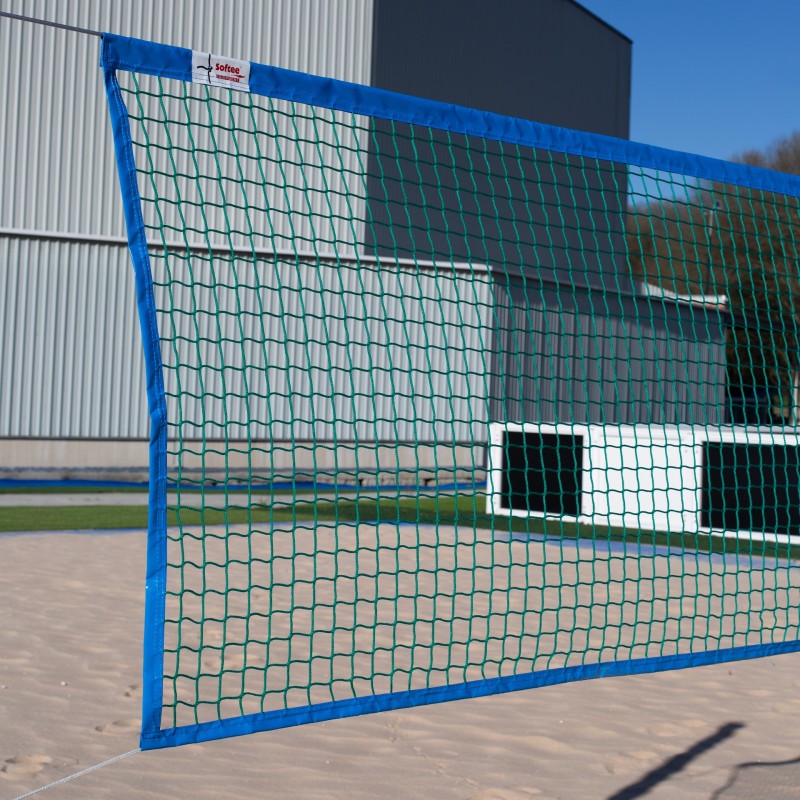 2,3MM POLIPROPILENO EN VERDE, MALLA DE 45X45MM CON CINTA AZUL POR TODO EL PERíMETRO (LA SUPERIOR DE 5CM A CADA LADO Y LA DE LOS LATERALES + INFERIOR DE 3CM CADA LADO), CON CUERDA . MEDIDAS 8,55X1,0MTS